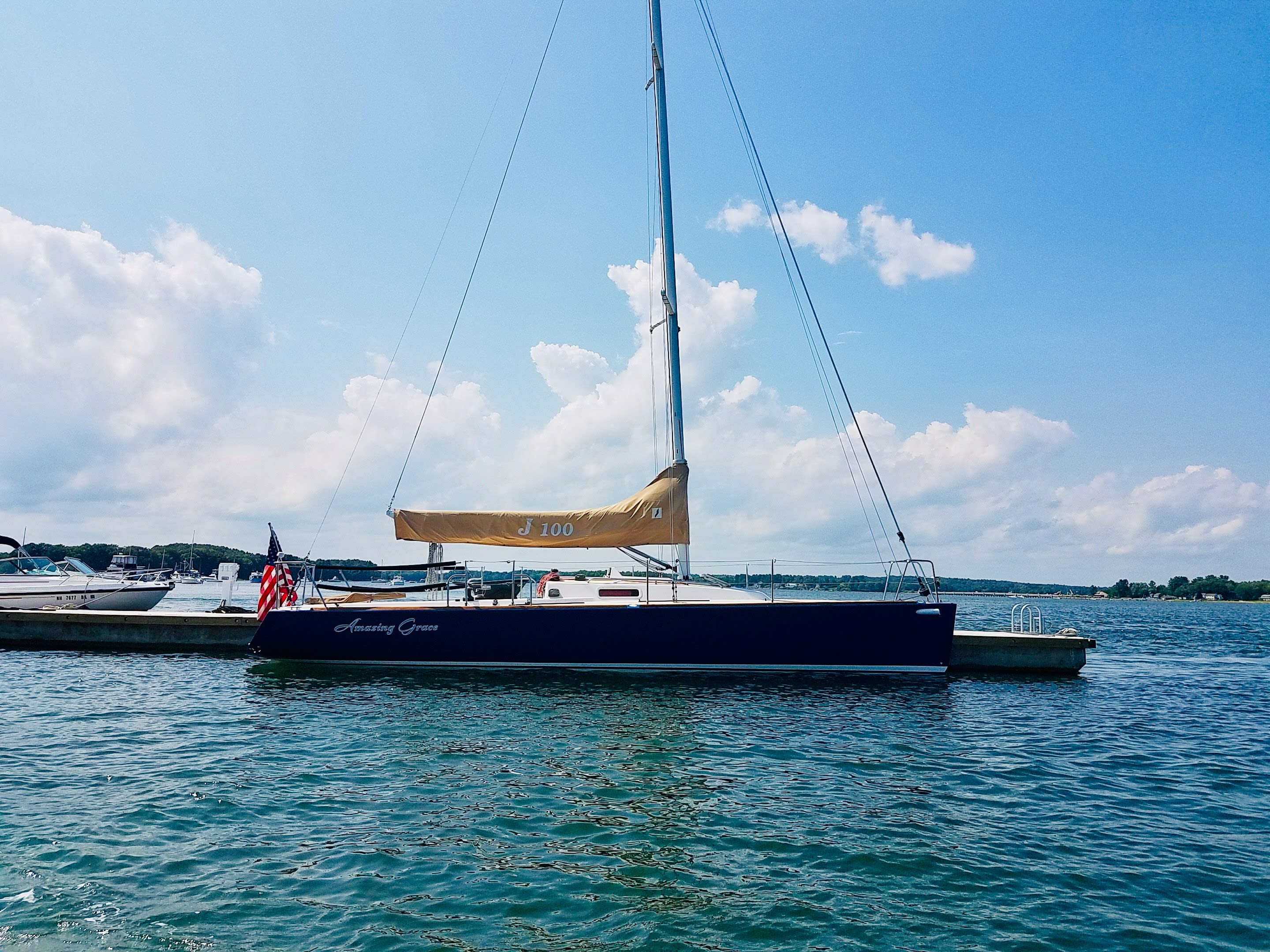 Amazing Grace was optimized in 2017 by International Marine of Rhode Island, including a new Aristo Blue with over $22,000 of upgrades with an Awl-grip hull in Aristo Blue, a smooth race-ready- bottom and a retractable bowsprit. In this configuration, the J/100 has a proven race record under PHRF, and yet remains the complete daysailer. In addition to her 2017 re-fit, this boat has three new race sails by North and new B&G instruments that were installed in 2019.