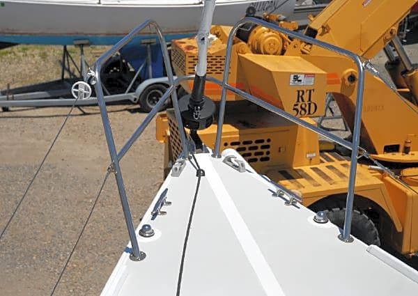 1 Danforth anchor double lifelines bow pulpit swim ladder white fiberglass deck running lights spreader lights cockpit cushions cockpit dodger boom cover 6 life jackets dock lines fenders safety equipment